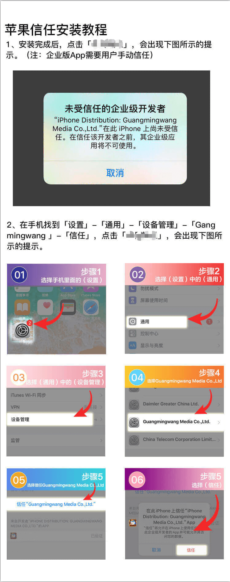 小贴士:请安装成功后再去信任哦~